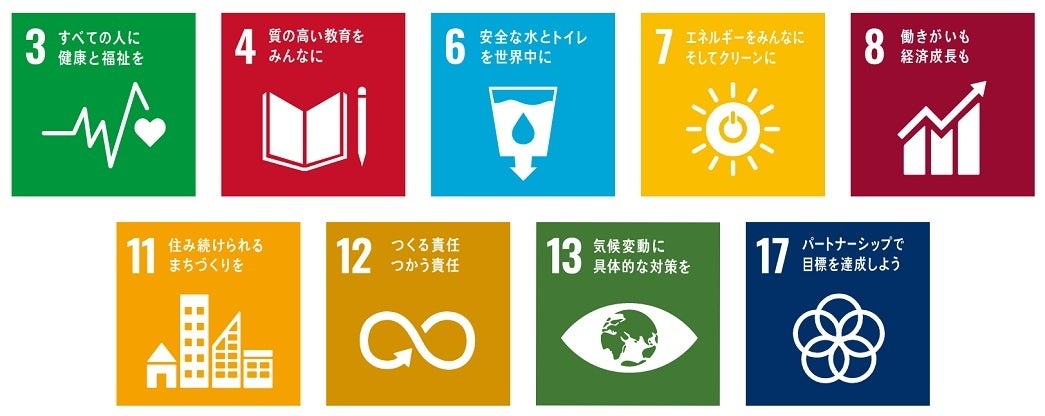 中日ビルは、SDGs(持続可能な開発目標)における9つの目標に貢献してまいります。