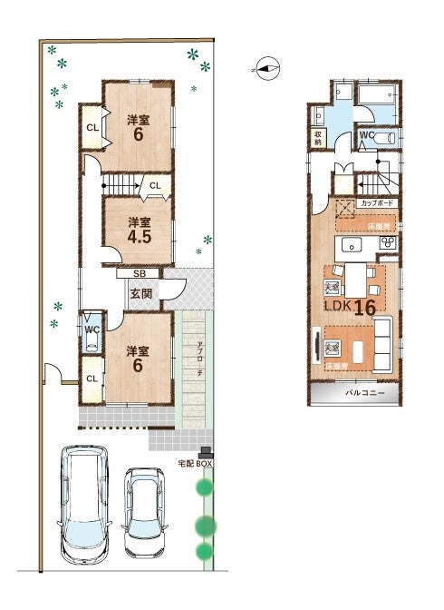 省エネ4等級 / 床暖房 / 車いす対応フロア / 駐車2台