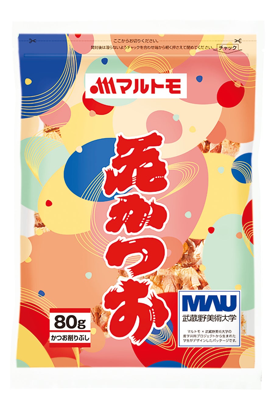 かつお節・だしと、海洋資源を通じて健康と食文化の発展に貢献するマルトモ株式会社(社長:今井均 本社:愛媛県伊予市)は、武蔵野美術大学(学長:長澤忠徳 東京都小平市)、大日本印刷株式会社(代表取締役社長:北島義斉 本社:東京都新宿区 ※以下、DNP)と連携し、Z世代の新たな観点を取り入れながらパッケージデザイン開発を行った「花かつお80g」を2022年9月1日より期間限定で発売します。