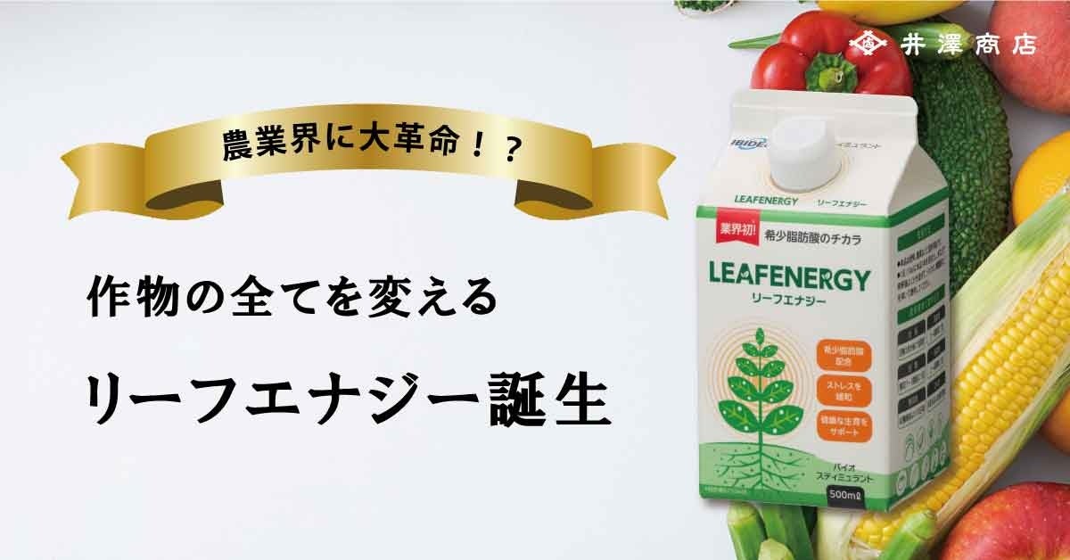 今回発売する、希少脂肪酸「リーフエナジー」は作物が本来持つポテンシャルを引き出し、安定した生育、品質、収穫をサポートする天然由来の資材です。
