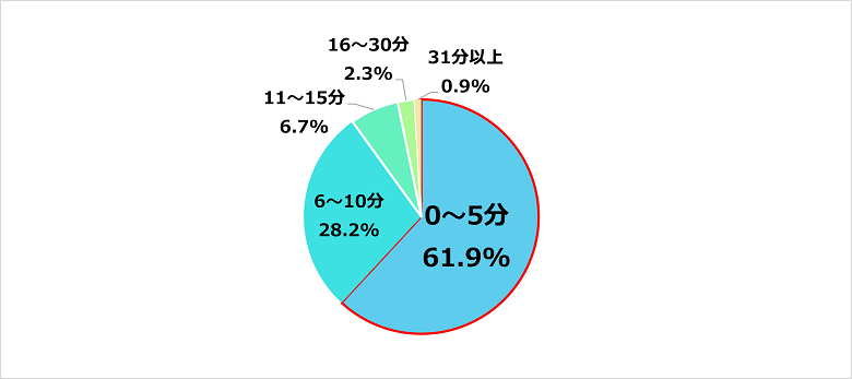 0~5分が約6割となり、長時間のケアは行っていない様子がうかがえた。
