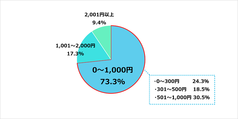 大多数が口腔ケアにかける金額は月1,000円以内におさめていることがわかった。