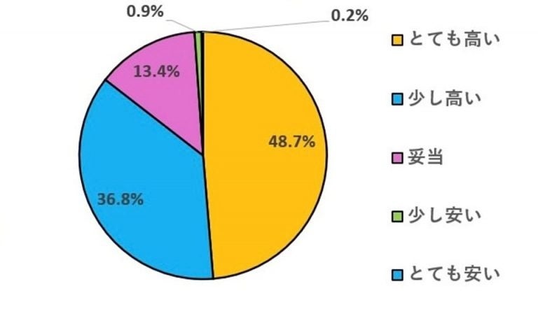 「とても高い」と思っている方が48.7%で「少し高い」が36.8%です。両方合わせて「高い」と思っている方が85.5%もいらっしゃいます。