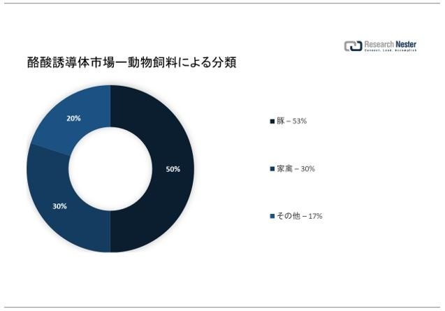 製品に基づいて、酪酸ナトリウム セグメントは、無臭または臭気の少ない肉に対する需要の増加により、これらのセグメントの中で大きなシェアを獲得すると予想されます。さらに、肉を食べるのが好きでも、ほとんどの人は肉の刺激的なにおいを嫌います。豚肉に対する嗜好の高まりは、予測期間中に市場の成長を後押しするとさらに推定されています。また、豚肉は鶏肉、子羊肉、牛肉よりも安価であるため、多くの国で非常に人気があります。また、世界中の人々の間でタンパク質食品の需要が高まっていることも、このセグメントの成長にさらに貢献すると予測されています。2021 年の調査の推定値の時点で、世界中の人々の約 85% 以上が食事で肉を消費しています。