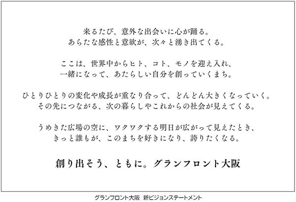 グランフロント大阪 新ビジョン 「創り出そう、ともに。」