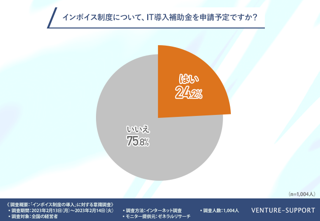 「インボイス制度について、IT導入補助金を申請予定ですか?」と質問したところ、「はい」と回答した割合は24.2%だった。