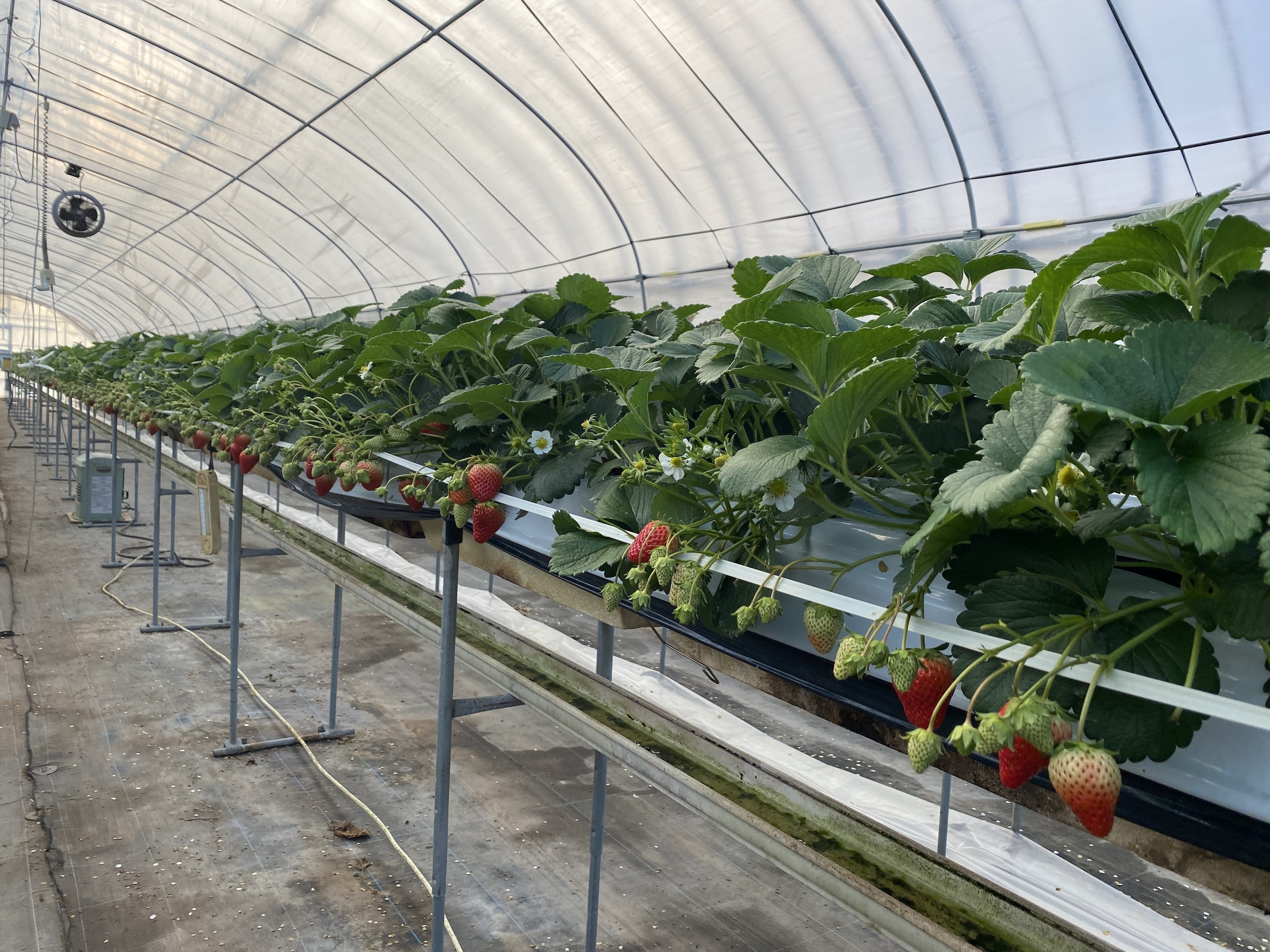 新設ハウスでは、耐候性ハウスに循環扇やWEBによる環境モニタリングなどの工夫を施し、ハウス内の採光性と温度ムラを改善するほか、寒冷地でも効率的に熱を集めて生産活動に利用できる施設園芸用ヒートポンプを暖房機に使用します。