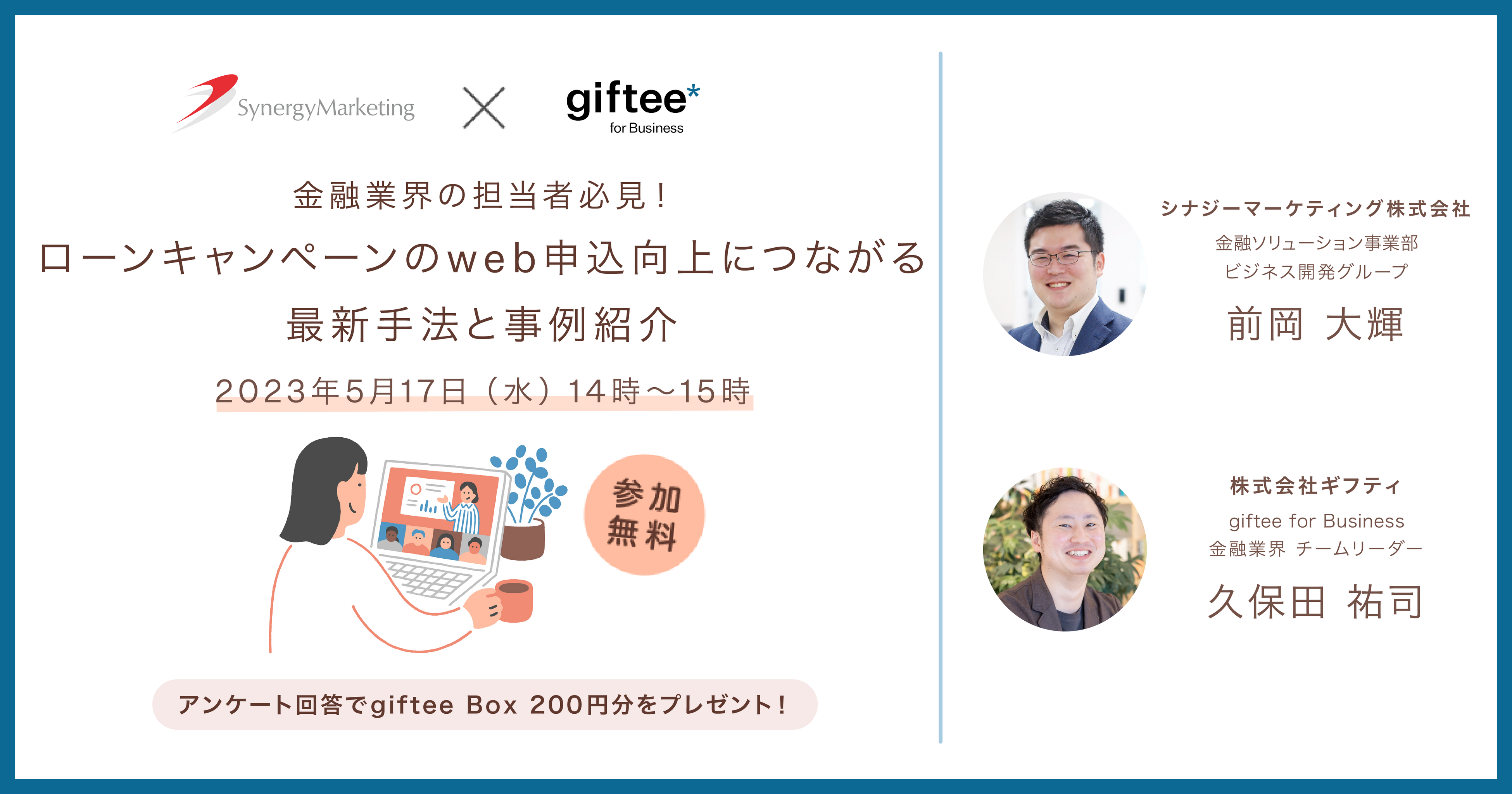 [申込]https://giftee.biz/seminar/giftee-synergy-2305/?utm_source=PRTIMES_synergy&utm_medium=PRTIMES_release&utm_campaign=seminar_synergy2305