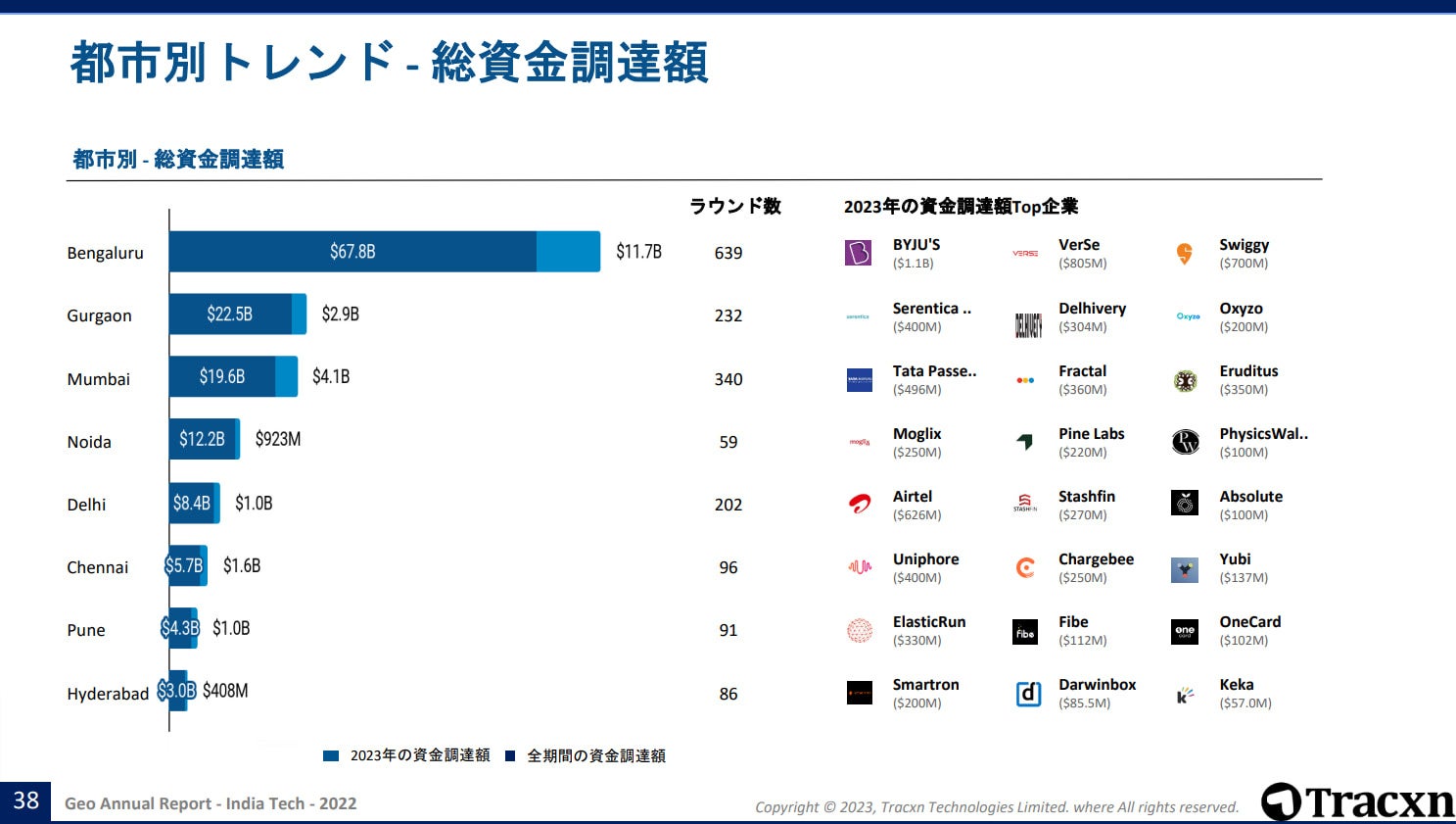「Tracxn」はスタートアップデータ分析を専門におこなう企業で、インド・バンガロールを拠点とし、350以上の技術分野の情報をデータベース化しています。