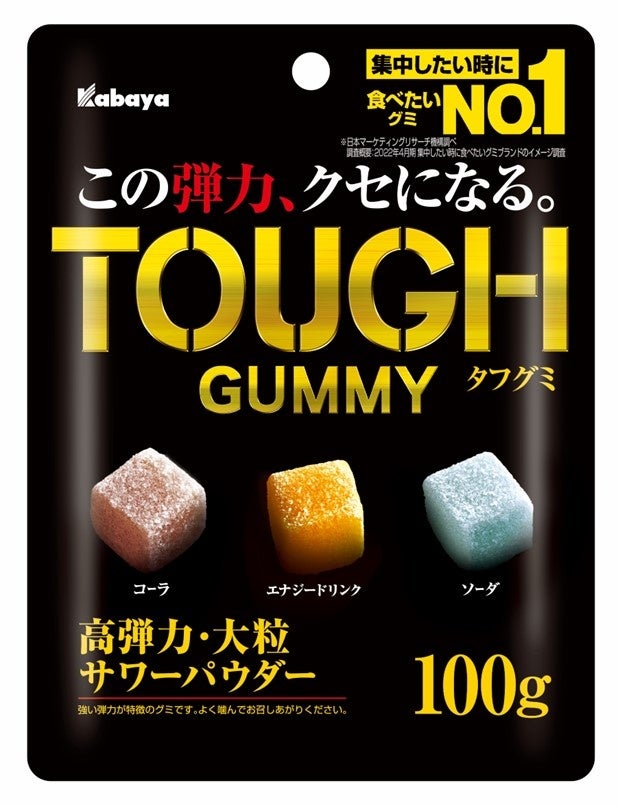 「タフグミ」ブランドが、「集中したい時に食べたいグミ No.1」「ハードグミ人気 No.1」を獲得しました。小腹が減ったときはもちろん、仕事でもうひと頑張りしたい、運転中で集中したい、勉強のお供としてもおすすめです。