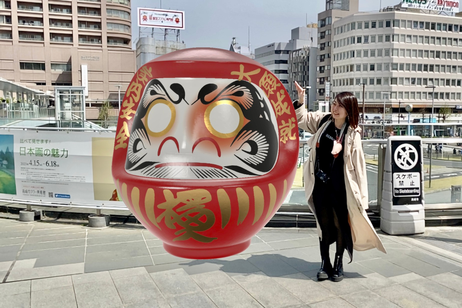 ④「高崎駅」または「Gメッセ群馬」を選択し、周りにスマートフォンをかざすと群馬各地の風景写真や3Dダルマとの写真撮影などがお楽しみいただけます