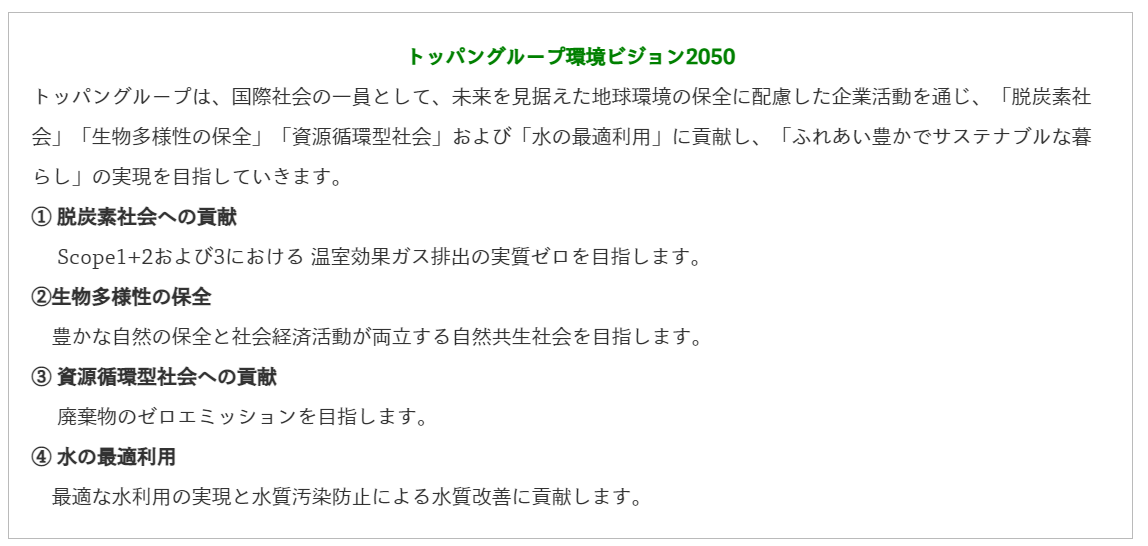■「トッパングループ環境ビジョン2050」「トッパングループ2030年度中長期環境目標」URL