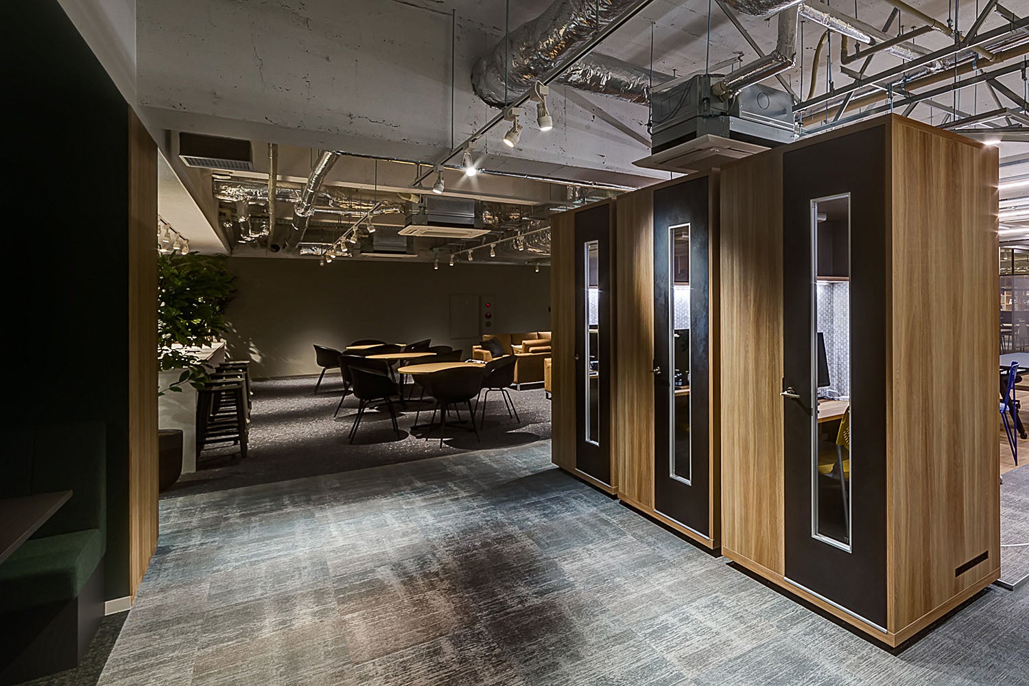 オフィスの中で他の人の活動に妨げられずに集中できるスペースや、音に配慮したウェブ会議用のワークブースでソロワークの効率を高めます。