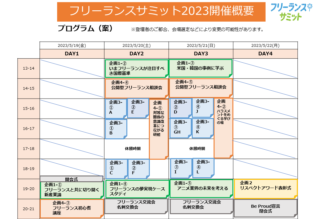 日程 :「フリーランス全国サミット」2023年5月19日(金)~ 5月22日(月)