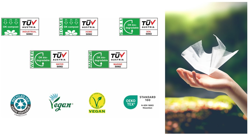 ベンリーゼ®は、TUV AUSTRIAが実施している生分解性認証(海洋生分解・淡水生分解・土壌生分解・コンポストによる生分解・都市型ゴミ処理場による生分解)など多くの環境に関する国際基準の認証・試験を受けています。これまでに培ってきた技術や知見を活かし、さらなる“持続可能な社会への貢献”を目指していきます。