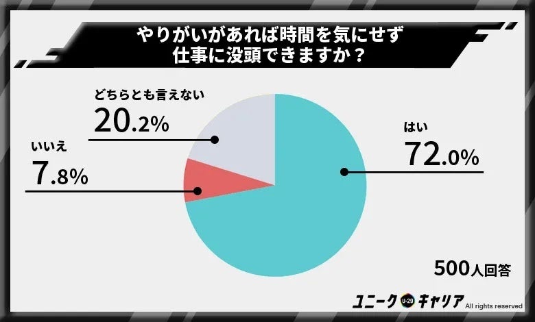 「やりがいがあれば時間を気にせず仕事に没頭できるか?」を仕事にやりがいを感じている500人に訊いた。