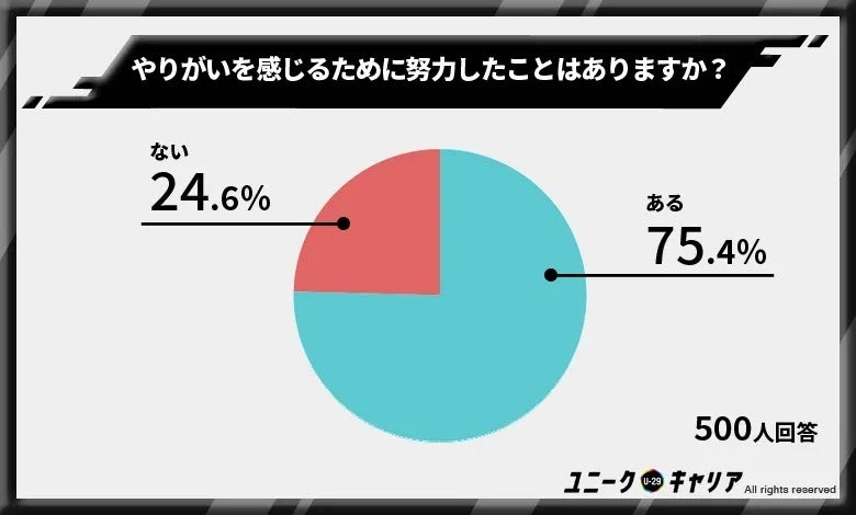 仕事でやりがいを感じている500人のうち、75.4%と多くの人が「やりがいを感じるために努力したことがある」と回答している。