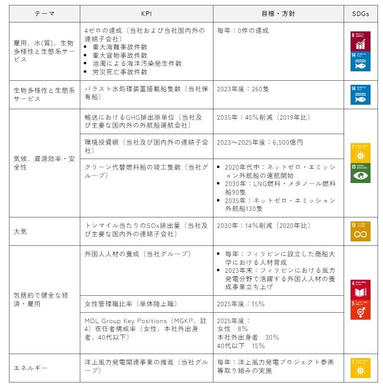 当社グループは、事業を通じて優先的に取り組むべき社会課題として5つの「サステナビリティ課題」を特定し、経営計画「BLUE ACTION 2035」の一部として、それらの課題に対する具体的な行動計画「MOL Sustainability Plan(MSP)」を策定しています。