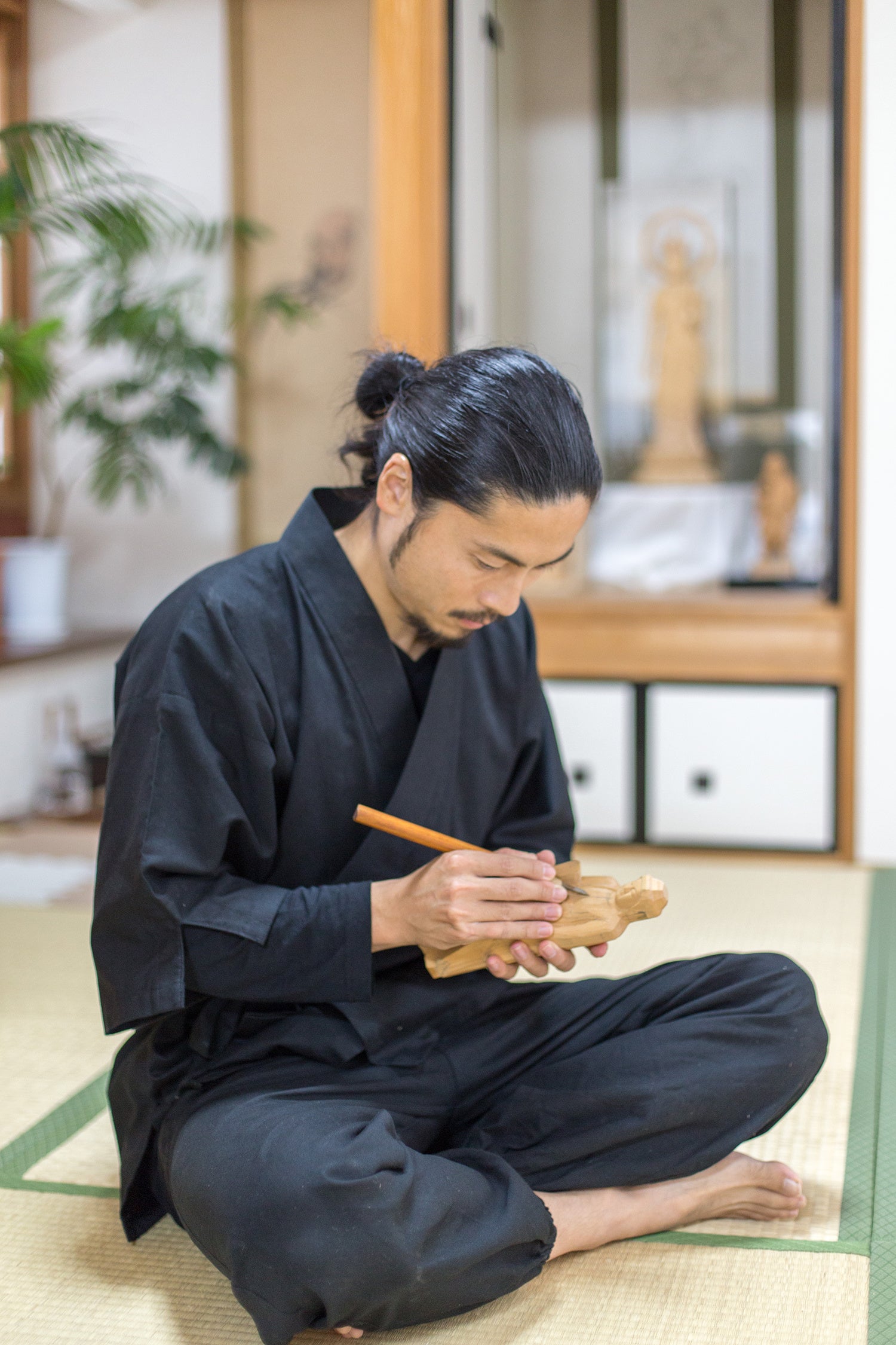 そして幸いなことに、制作も次世代に引き継がれました。京都府認定京もの認定工芸士の宮本我休氏をはじめとした工芸士たち、そして先祖代々、木曽檜を守り続け日本全国の寺社仏閣に用材を納めている池田木材株式会社と共に千年仏の完成を志すこととなりました。