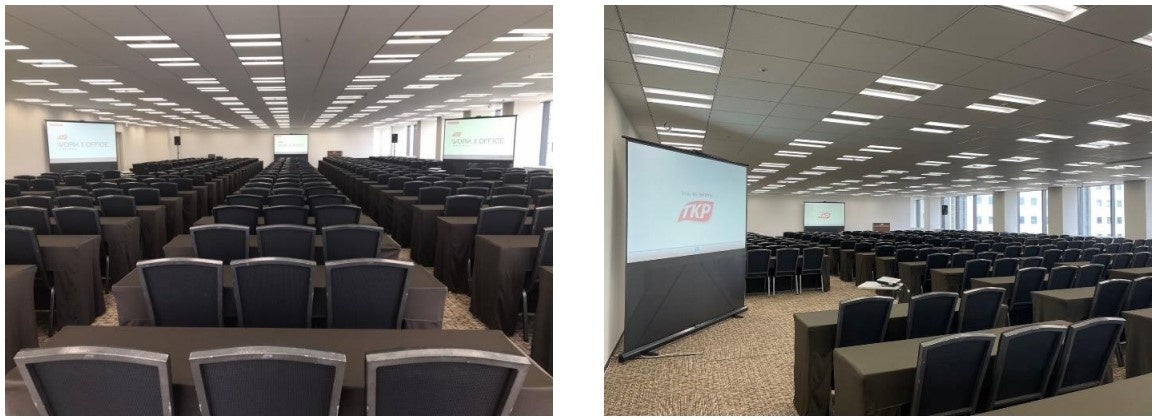 契約面積は2,051.46㎡(620.57坪)の1フロア1,000人を超えるキャパシティで、会議はもちろん、企業研修やセミナーなど多くのお客様が集まる場所としてのご活用など、あらゆるビジネスシーンに対応できる施設となっております。