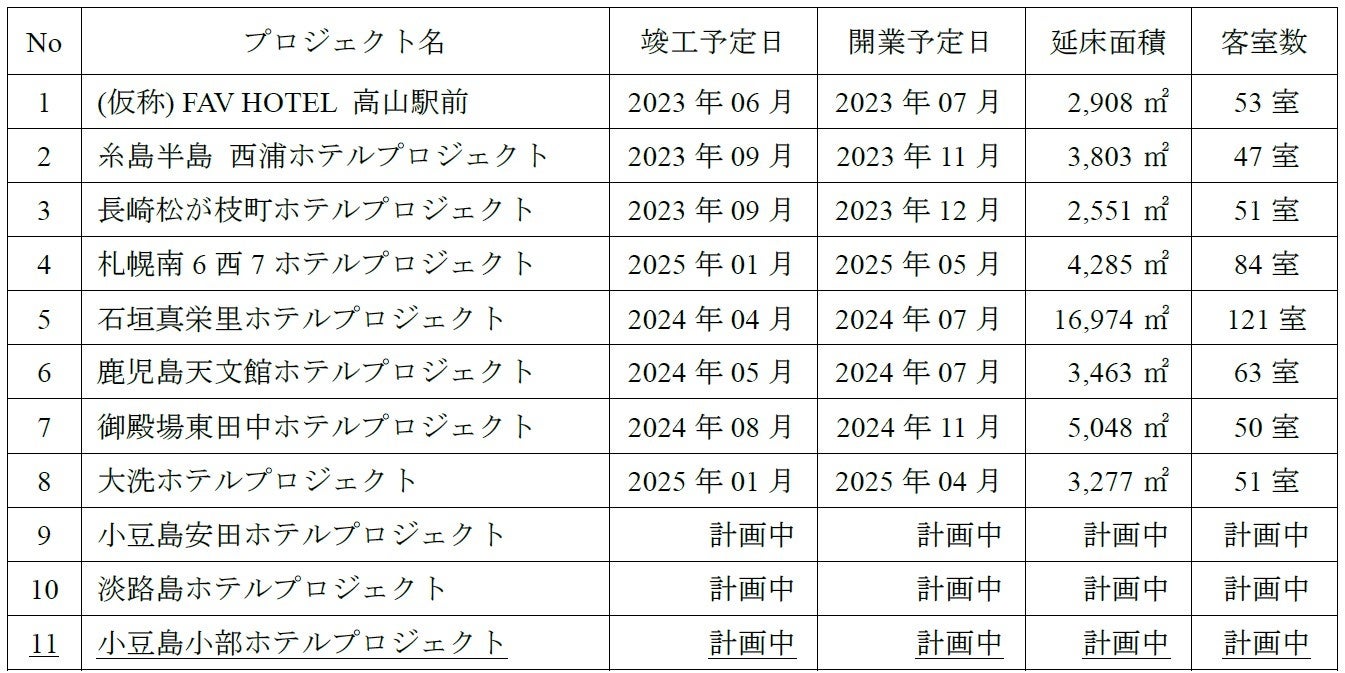 当社は観光立国の実現や地域創生への貢献を目的にアパートメントホテルの開発に取り組んでおり、全国で展開をおこなっております。このたび、当社グループのホテルブランド『FAV HOTEL』の開発用地を新たに販売用不動産として取得いたしました。