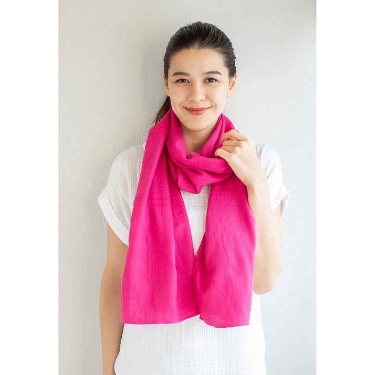 お出掛けやウオーキングなど季節や場所を問わずお使いいただけるガーゼマフラー。