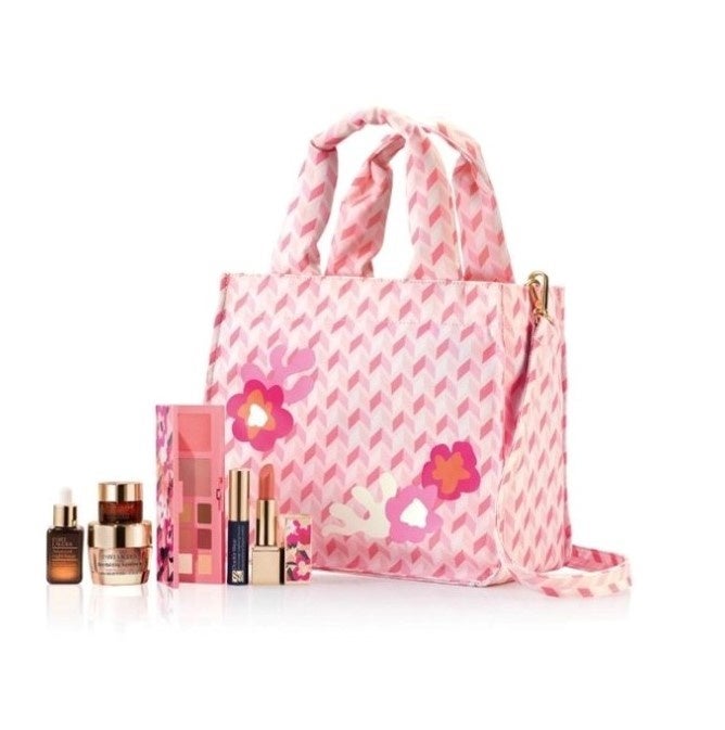 コスメキットアイシャドウパレットとリップスティック、マスカラのエスティ ローダー人気アイテムが一堂に。