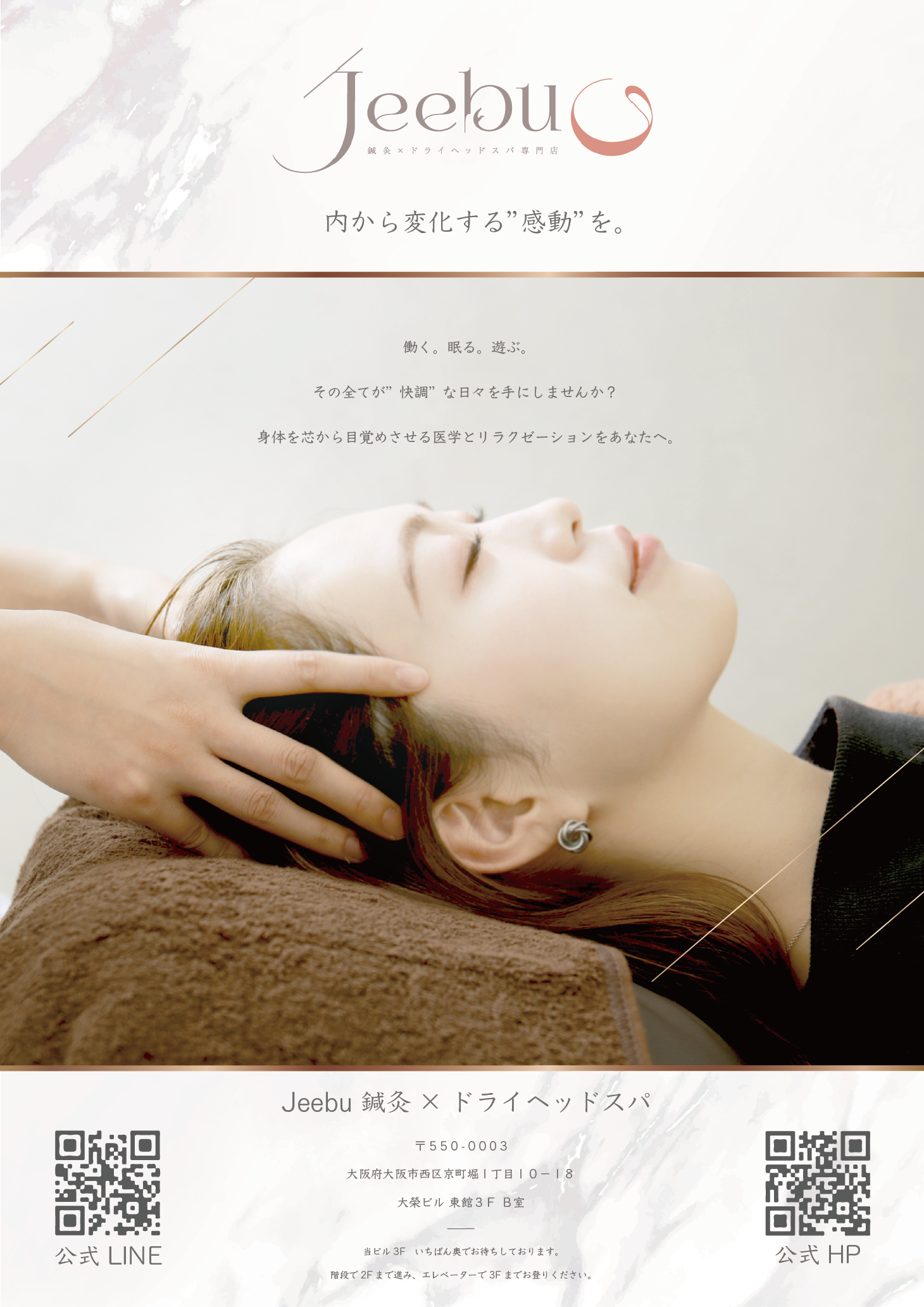 「関西初!鍼灸とドライヘッドスパの専門店、jeebu鍼灸ドライヘッドスパ専門店が2022年7月にオープンしました!」