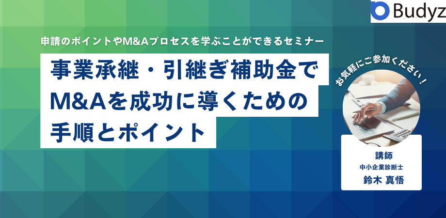 当セミナーでは中小企業診断士の鈴木が登壇し、現場の観点からM&Aに関する情報を提供いたします。また、事業承継・引継ぎ補助金を申請する際に注意すべき点を解説いたします。
