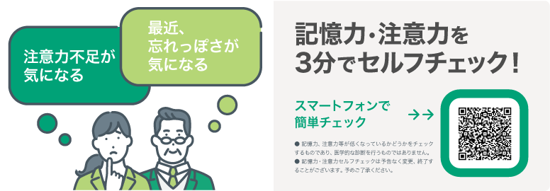 ※このチェックは認知症などの疾患、病状の診断をするものではありません。