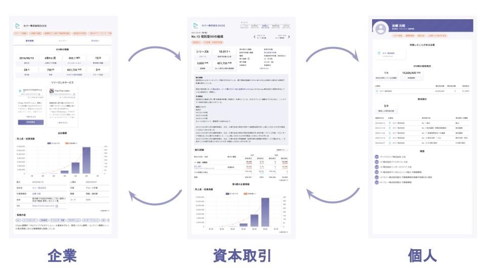 shihonは、スタートアップ企業が設立された時からIPOをするまでの期間に行った資本取引をすべて個別具体的に収録しているデータベースです。データベースに収録されている情報は資本取引に関する情報のほか、出資を行った法人株主・VCやスタートアップ企業の情報を掲載した企業情報や、出資したエンジェル投資家や役員等の個人に関する情報を掲載しております。