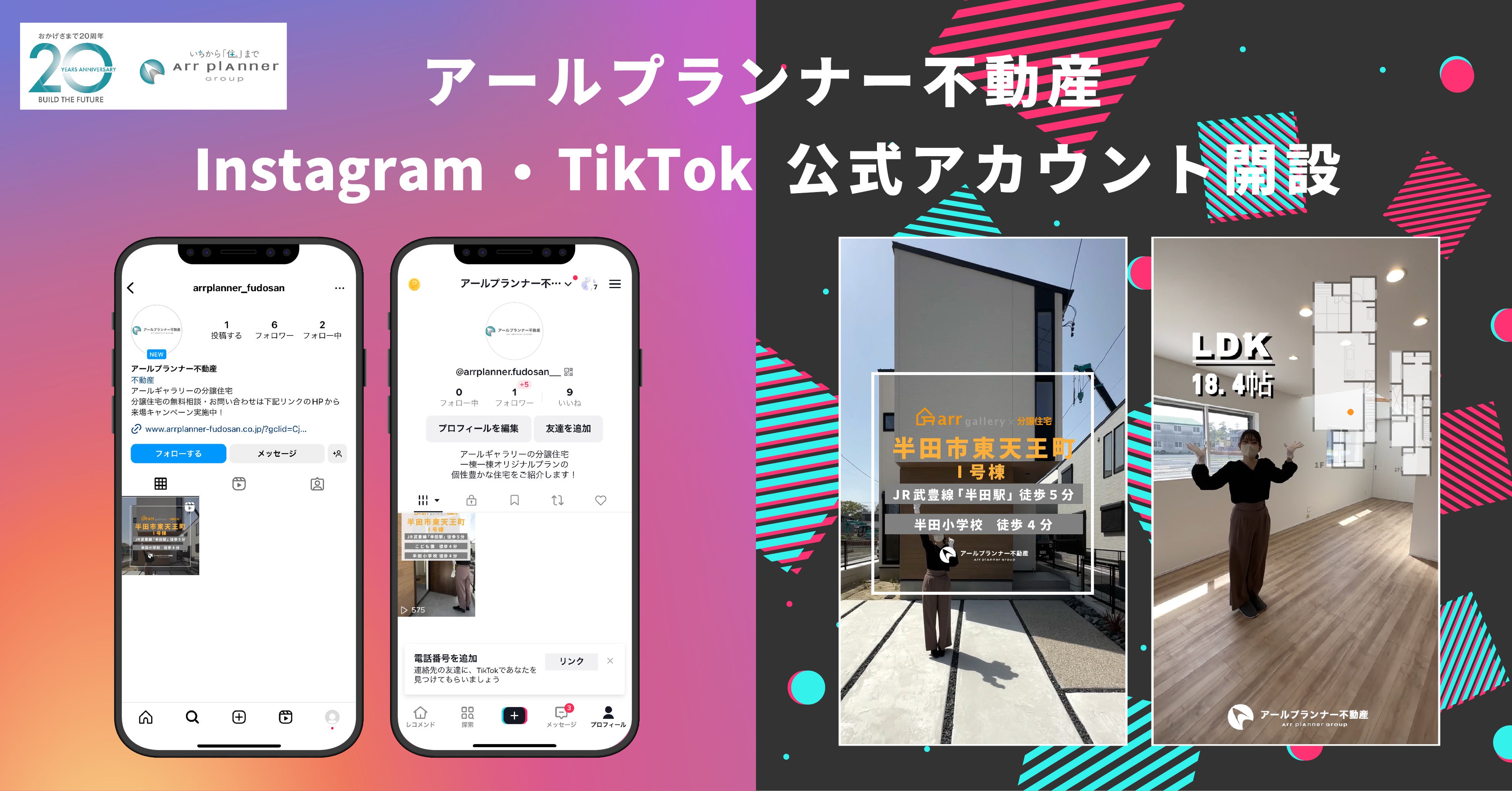 当社は、アールプランナー不動産TikTok・Instagram公式アカウントを開設いたしました。