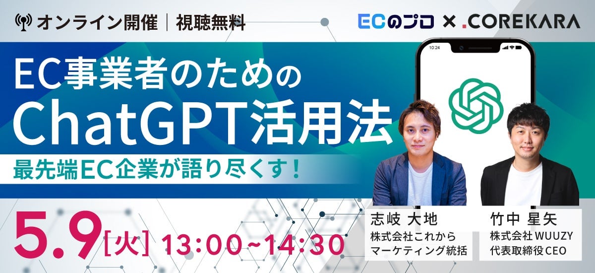 EC事業者さまを対象とした、ChatGPTの利用実態のアンケート結果の発表も行いますので、他のEC事業者がChatGPTをどのように活用しているか気になる方にもオススメです。