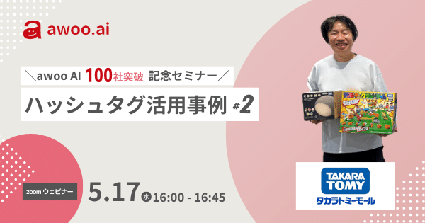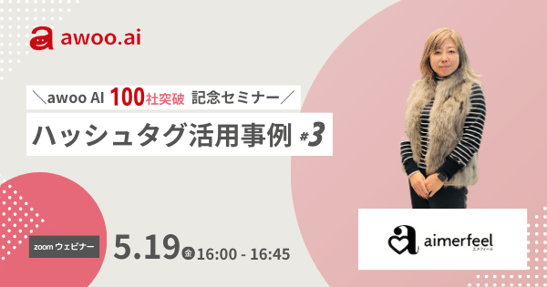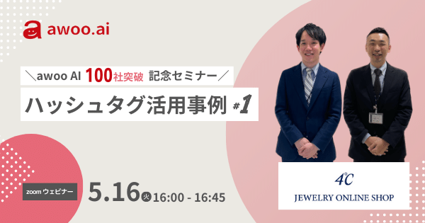 ECハッシュタグ自動生成ツール「awoo AI」は、2023年4月をもちまして、日本国内での導入企業数が100社を突破しました。これを記念し、過去に実施した「awoo AI」の活用事例セミナー3つを再放送します。
