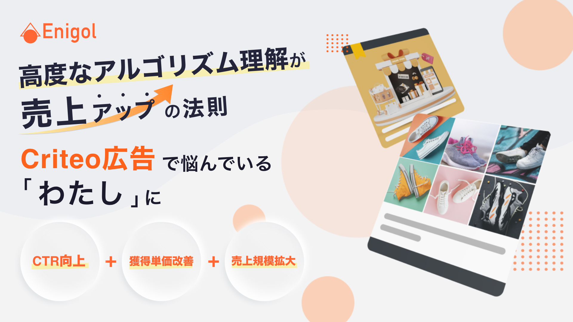 Criteo広告は、ECサイトやオンラインストアの売上向上に効果的な広告手法ですが、運用に関する知識や経験がない企業にとっては難しい課題もあります。EnigolのCriteo広告の運用代行サービスは、専門知識を持ったエキスパートが効果的な戦略を策定し、広告の最適化を行うことで、クライアント企業の売上向上をサポートします。クライアントの商品をより多くの人々に広めていくために、Enigolの持つノウハウを惜しみなく提供していきます。