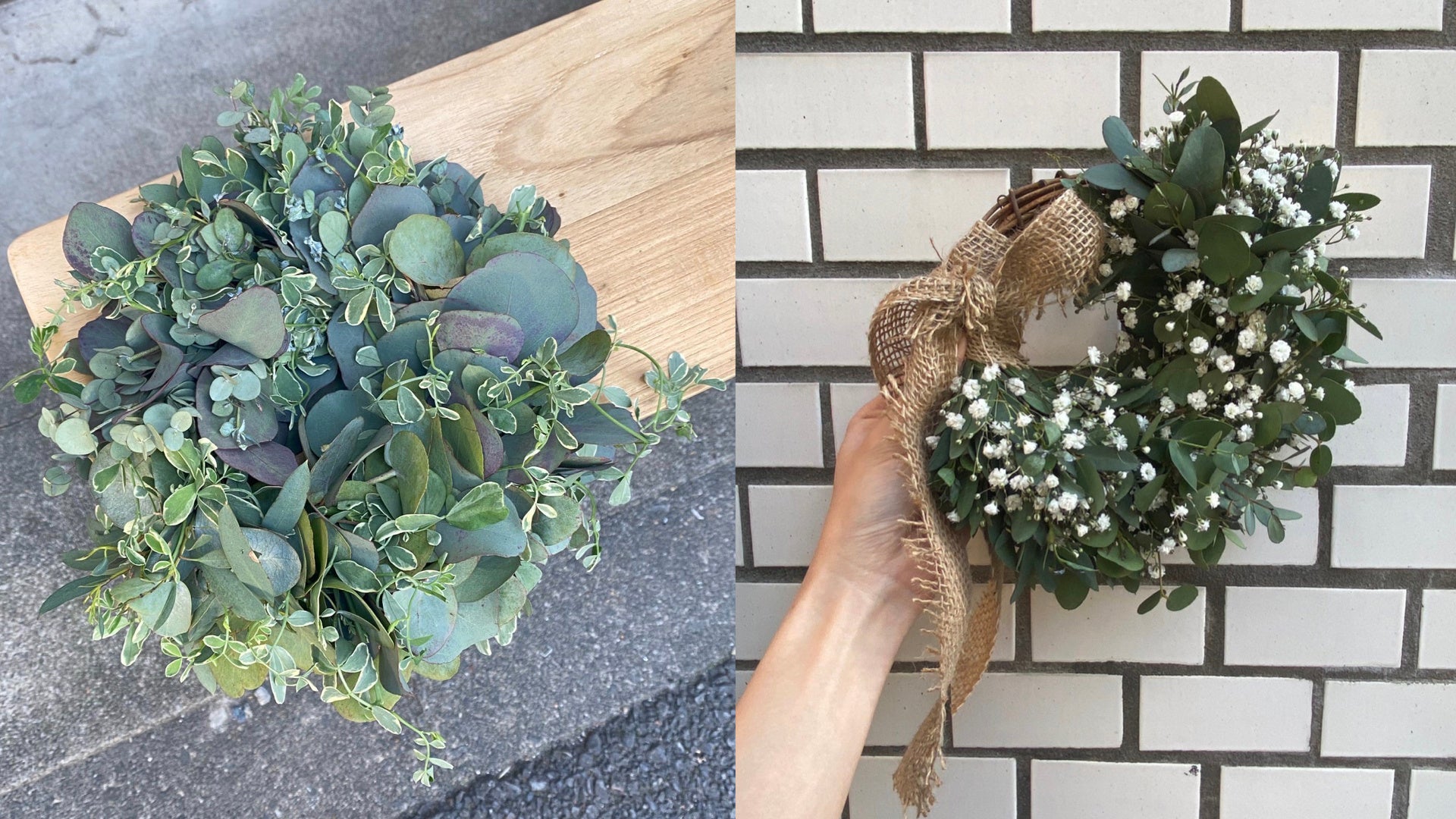 左から「eucalyptus mix wreathe」「natural wreathe」