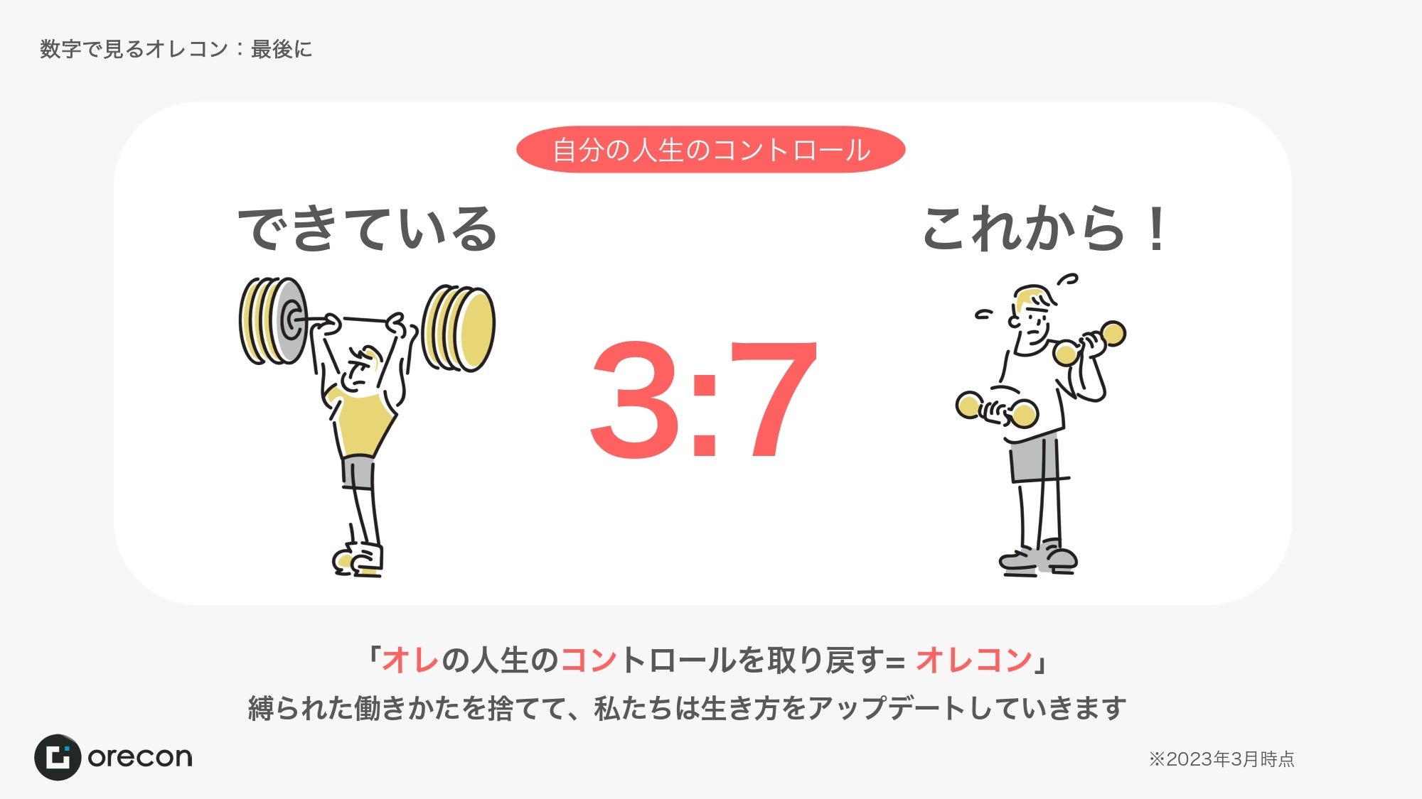 オレコンの社名の由来は、「オレの人生のコントロールを取り戻す」という想いから来ています。