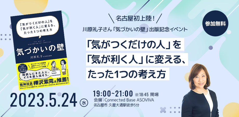 今回は出版を記念し、著者である川原礼子さんとエスケイワード代表 沢田圭一によるワークショップを開催します。著書にまつわるお話を交えながら、明日から実践できるちょっとした気づかいを身に着けるワークショップを実施します。