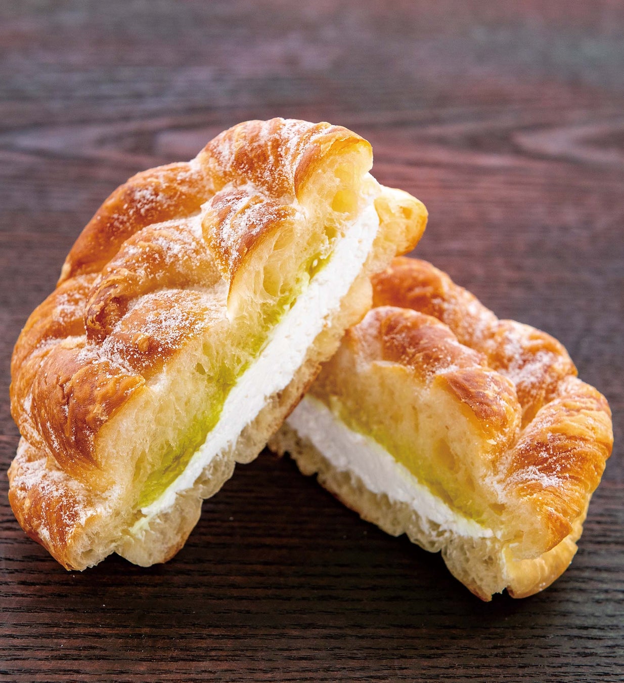 うずまき形状のデニッシュをスライスし、すっきりとした味わいのミルクホイップと、梅のピューレを使用した風味豊かな甘酸っぱさが特徴の梅ジャムがサンドされ、それら3つが合わさることで、爽やかで絶妙なバランスの味わいが楽しめる商品です。