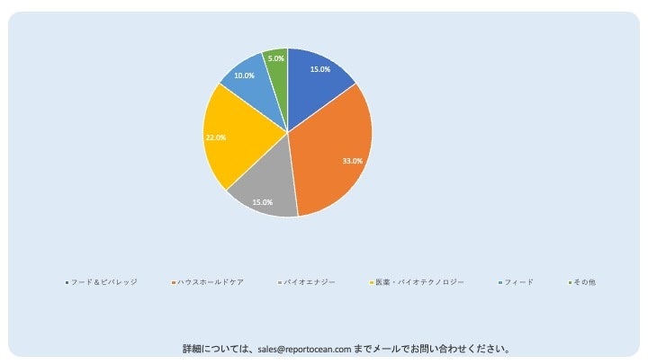 酵素は、生物学的な反応において、反応速度を変化させ、望ましい結果をもたらす生体触媒である。酵素はタンパク質でできており、その応用範囲の広さから、近年特に注目されています。酵素は、食品・飼料、繊維・洗剤、医薬品・バイオテクノロジー研究開発、製造業、その他(紙・パルプ加工、皮革加工、農業)などで使用されています。製造工程での酵素の利用により、大幅なコスト削減とエネルギー消費の抑制、基質活性の向上が図られ、酵素産業の拡大に寄与しています。