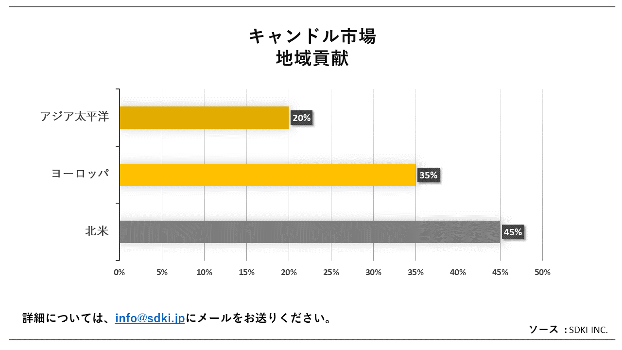 問題:2035 年までにキャンドル市場で大きな市場シェアを保持するか、顕著な成長を示すと予想される他の地域はどれですか?