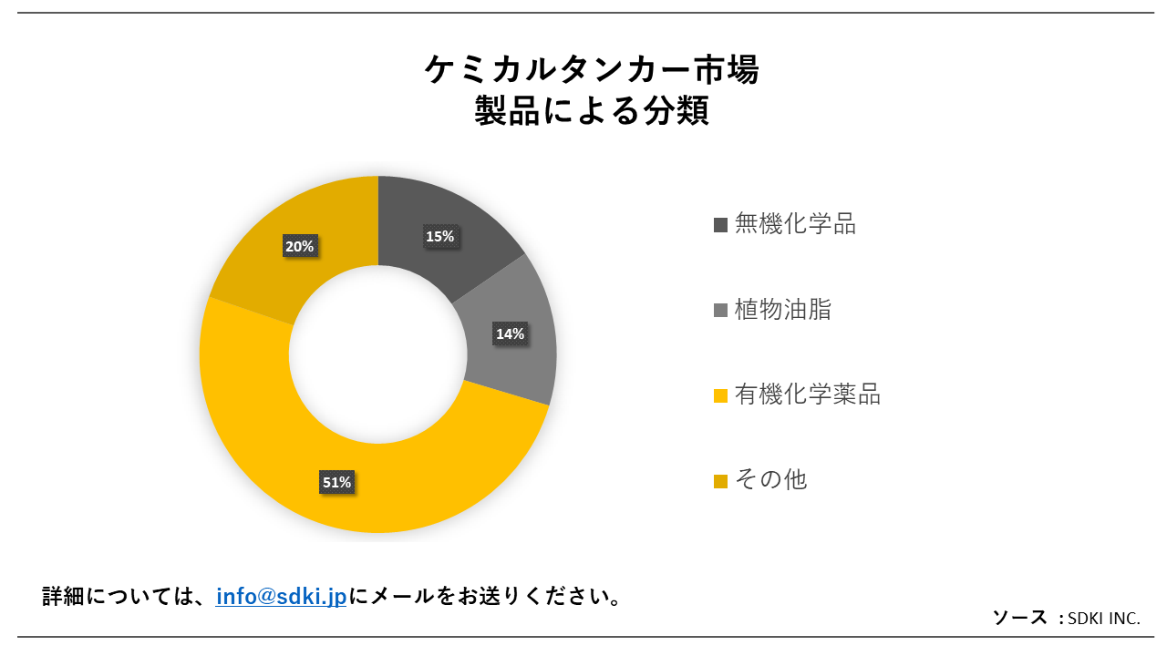 日本は港湾インフラが発達しており、中国、韓国、台湾など他の主要な化学品市場ともつながっています。これにより、ケミカルタンカー事業者は、日本との間の化学品の輸送が容易になりました。例えば、2021年、日本は約195億米ドルの有機化学品を輸出し、世界第19位の有機化学品輸出国となっており、この地域のケミカルタンカー市場の大きな成長をもたらしています。日本は、戦略的な立地、化学品の需要の増加、整備されたインフラ、厳しい規制により、ケミカルタンカー事業者にとって有利な市場となっています。