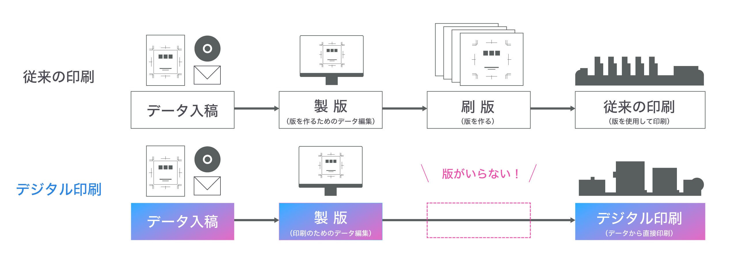 デジタル印刷は、従来のグラビア印刷に比べて多くのメリットがあります。