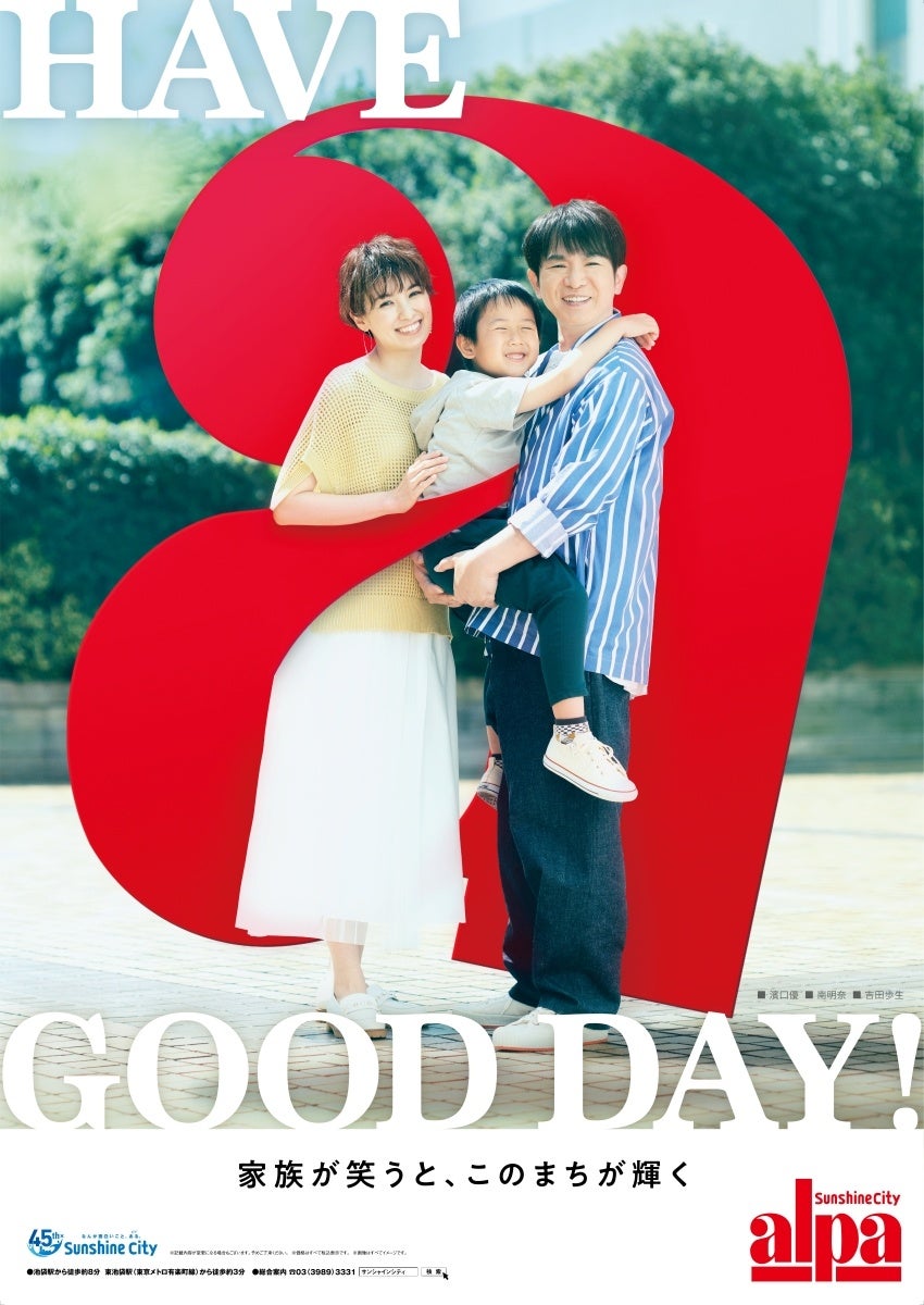 専門店街アルパは池袋エリアを活性化させる使命のもと、日常に不可欠なお買い物や飲食から、イベントまで多目的に過ごせる場所として、アルパが家族を輝かせる場所であることを表現できるよう、「家族が笑うと、このまちが輝く」をキャッチコピーとし、プロモーションムービー・ポスタービジュアルを制作しました。また、今回のメインメッセージとなる“Have a good day !”の“a”はalpa(アルパ)をイメージし、家族の何気ないくらしの中にアルパがいることを伝えています。
