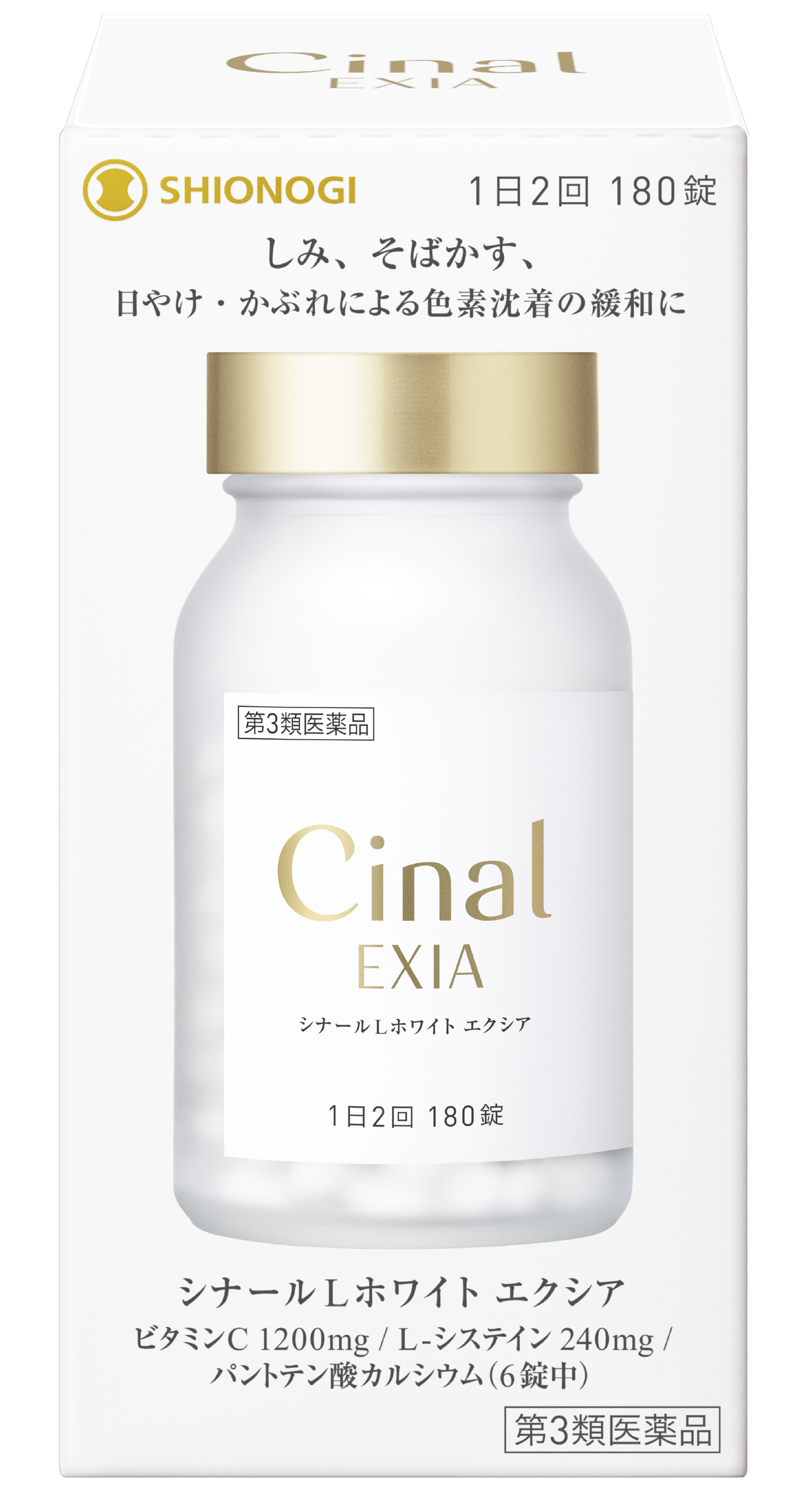 シミ対策成分のビタミンC1,200mgと、L-システイン240mg(成人1日量)に加え、肌の正常な働きをサポートするビオチン、パントテン酸カルシウム、ビタミンB6を配合し、シミ、そばかす、日やけなどによる色素沈着を緩和します。2023年春より新パッケージにリニューアル。