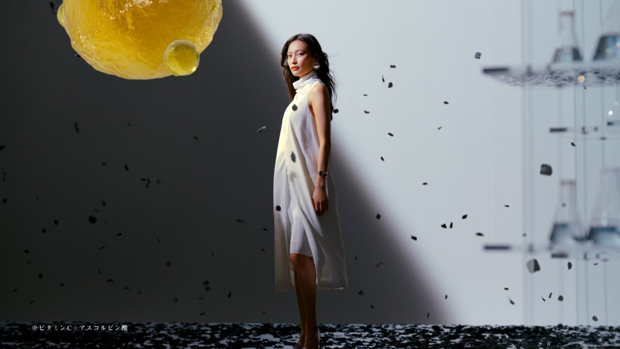 今回のシナールのCMは、大政絢さんがSHIONOGIのこだわりである「メディカルビタミンC」に出会うストーリーになっています。舞台は、美術館のようなちょっと不思議な研究所。そこに立つ大政さんの元に、キラキラと輝くビタミンCが現れると、黒で覆われていた世界に光が差し込み、美しい白い世界が現れるダイナミックな演出で、SHIONOGI、そしてシナールのビタミンCへのこだわりを表現しています。
