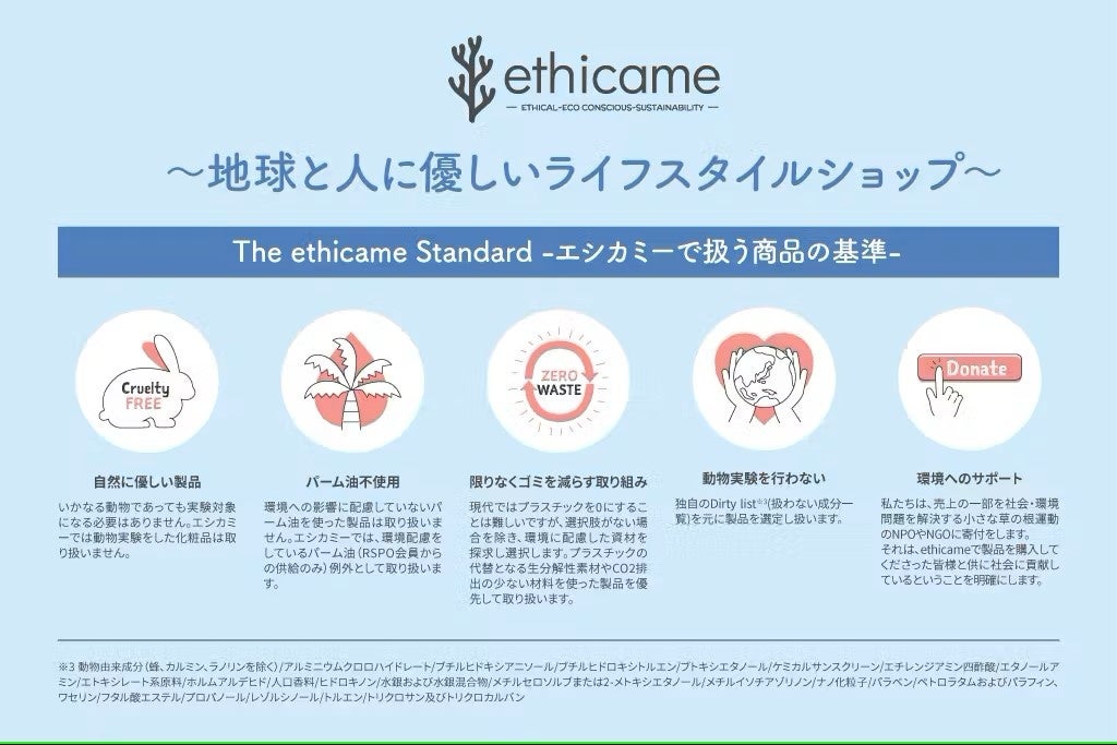 *2 クリーンとは、エシカミーで定めたダーティーリストに記載された成分を使用しておらず、不透明性をなくし、環境や生物保護を意識した製品の事です。
