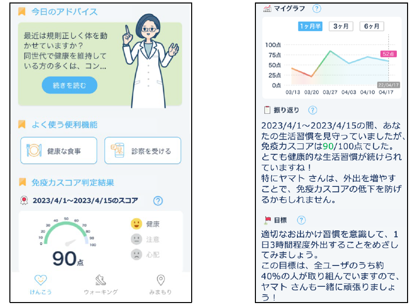 2. 健康マイレージ上での「免疫力推定AI」のUIイメージ