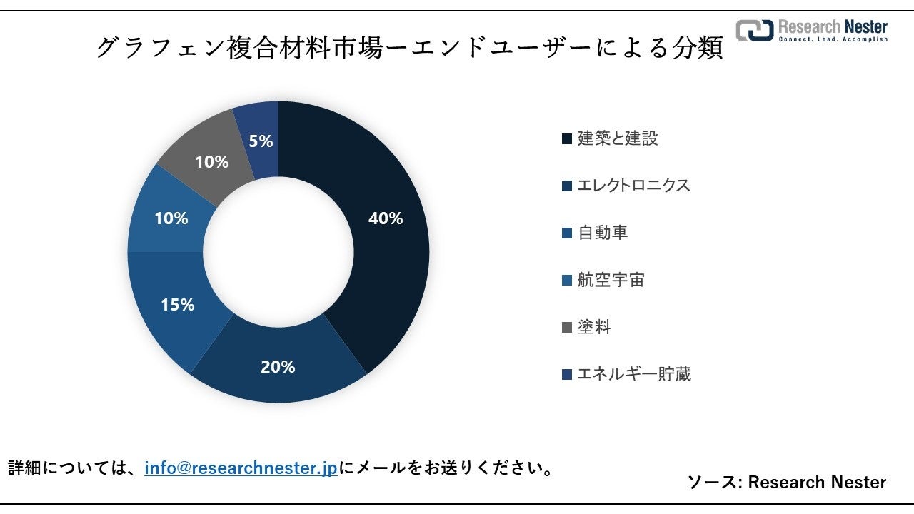 グラフェン複合材料市場は、エンドユーザーによる需要と供給について、エレクトロニクス、建築および建設、航空宇宙、自動車、塗料、エネルギー貯蔵などに分割および分析されています。このうち、自動車セグメントは、予測期間中に最大の市場シェアを保持すると予想されます。1 つの素材で、ユーザーは同時に非常に多くのメリットを得ることができます。グラフェン複合材料は、車両の性能と安全性を損なうことなく、重量を 10ー15% 削減するのに役立ちます。これにより、燃費も 6%ー10% 向上します。したがって、自動車セグメントは将来的にさらに成長すると予想されます。国際エネルギー機関によると、電気自動車の販売台数は 2019 年に世界中で 2百万台に増加しました。