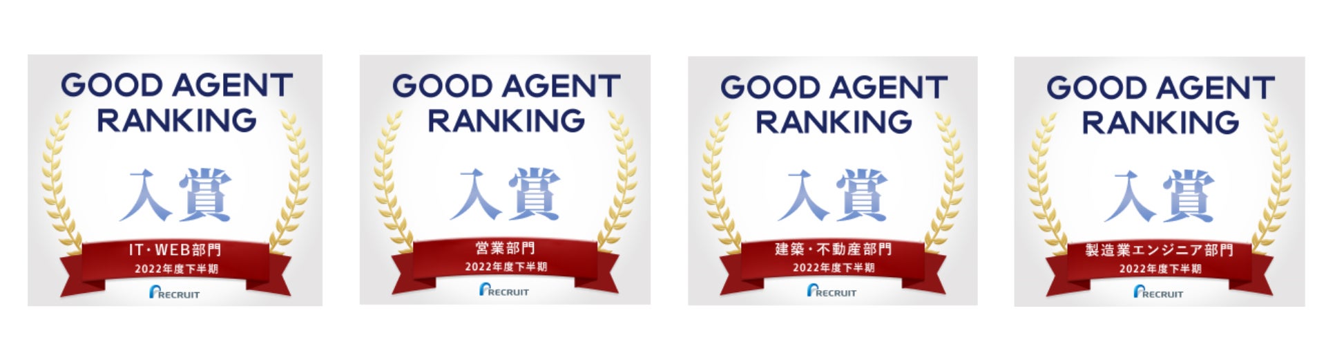 リクナビNEXT『GOOD AGENT RANKING ~2022年度下半期~』にて『転職決定人数部門 第1位』を受賞
